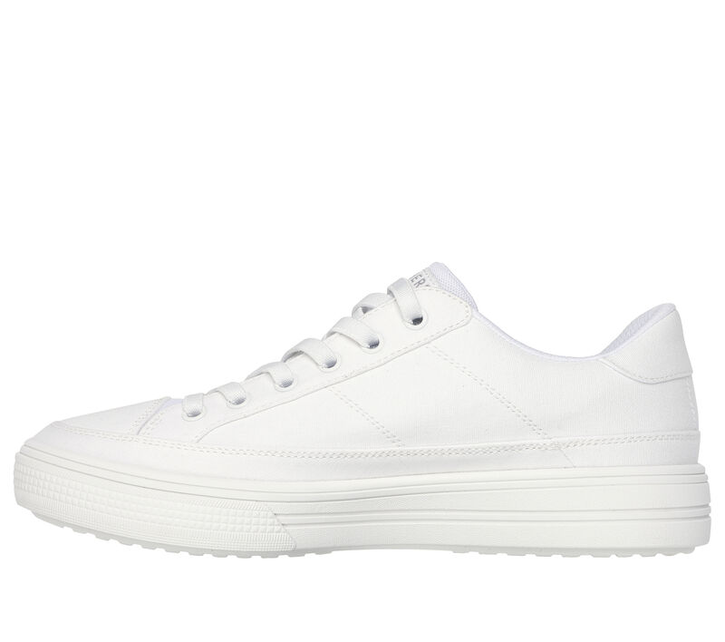This Sketchers shoe easy-wearing vegan design has been granted the APMA Seal of Acceptance and features a cotton canvas upper with stretch laces, removable Arch-Fit® insole, and a lightweight cushioned midsole.