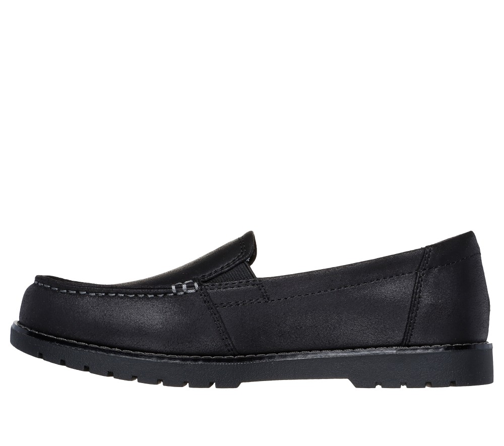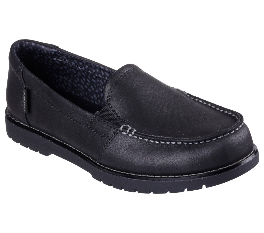 Crafted with 100% vegan materials, 1-inch built in heel with stitched detail top layer. This Skechers casual loafer features a vegan leather upper with a cushioned Skechers Memory Foam™ insole and lug traction outsole. For every BOBS® purchase, a donation is made to animals in need. Can look dressed up or down according to the occasion. These are Flats made by Skechers.