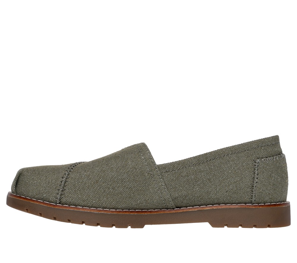 Washed canvas upper. This Skechers casual vegan design features a washed canvas upper with decorative ‘patch-look’ stitching details, a mini V-notched gore instep panel, Skechers Memory Foam™ insole, plus a lightweight, lug-look flexible traction outsole. For every BOBS® purchase, a donation is made to animals in need. Very comfortable from the first time worn. These are Flats made by Skechers.
