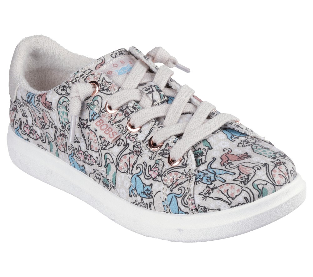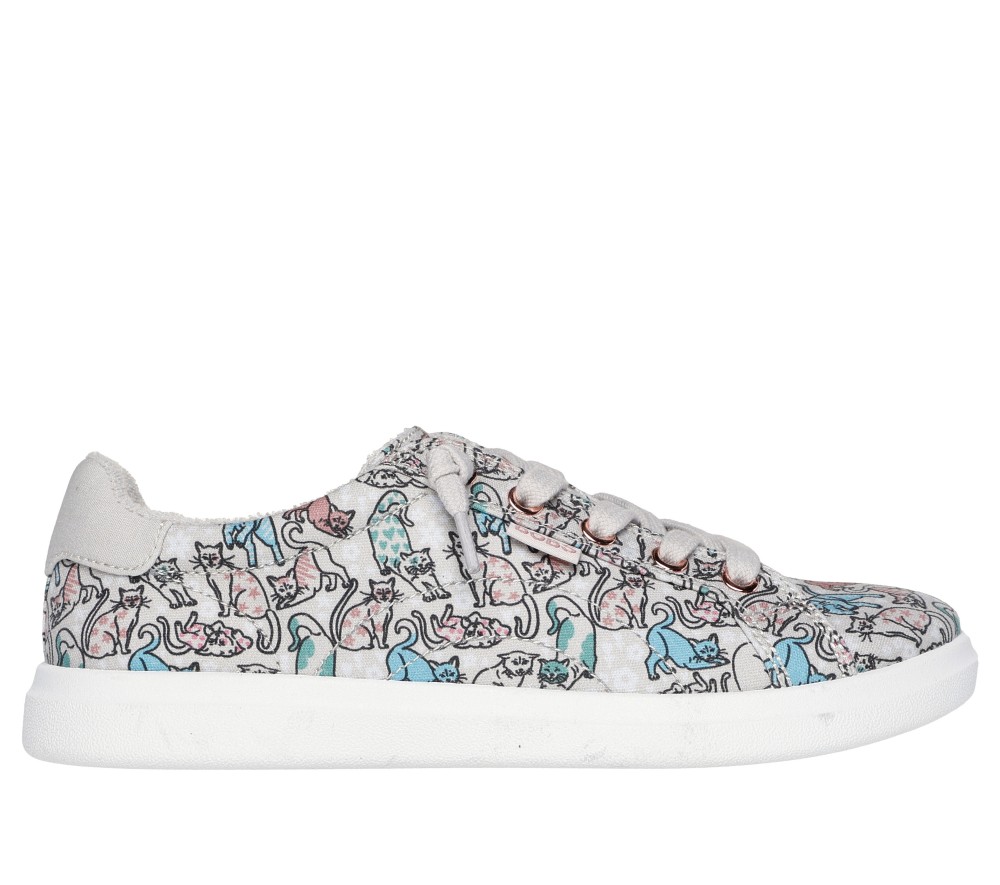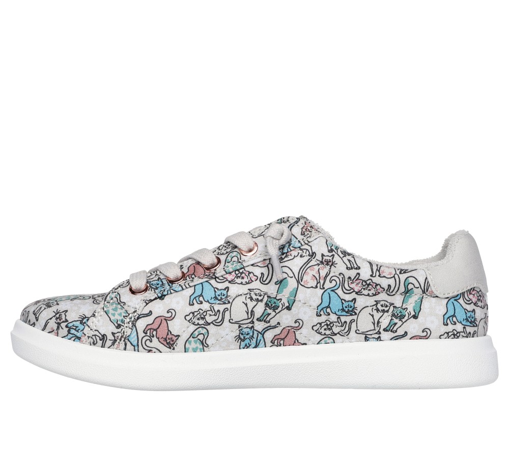 Skechers No Tie Fit™ laces never come untied. This Skechers shoe casual design features a canvas upper with an allover ‘Pattern Kitty’ print, deco laces, and a cushioned Skechers Memory Foam™ insole. For every BOBS® purchase, a donation is made to animals in need. These are Skechers Slip-Ons made by Skechers.