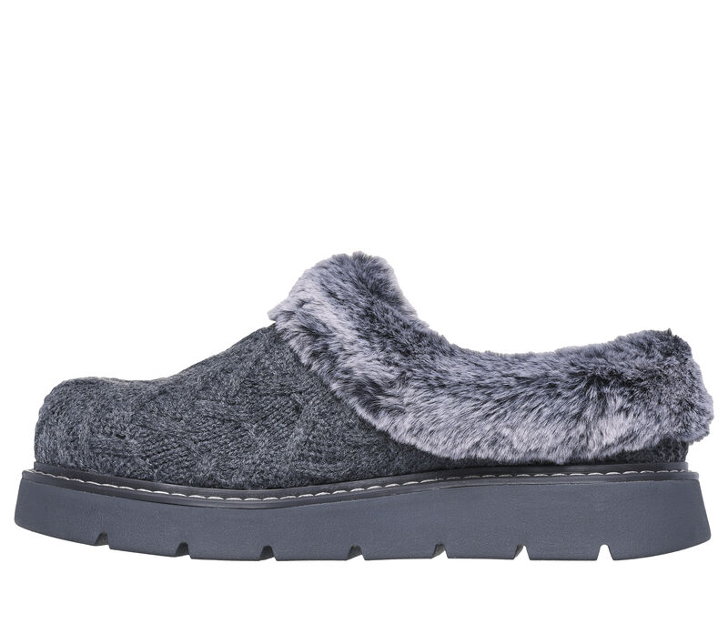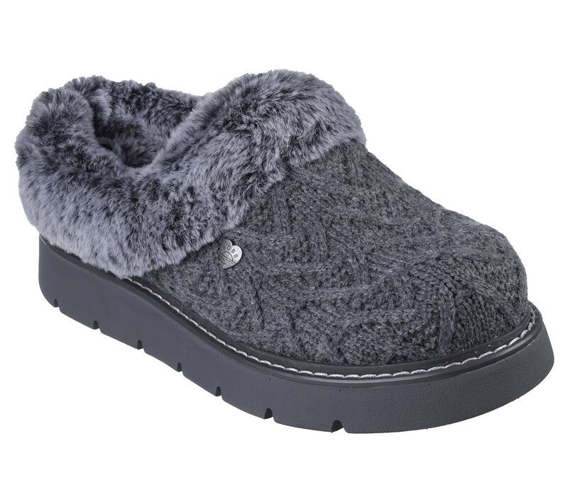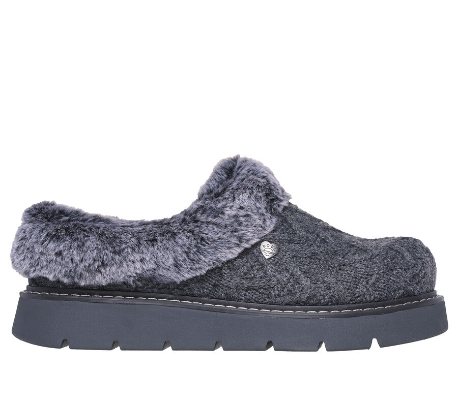 Skechers shoe featuring a soft sweater knit fabric upper with faux-fur lining and a cushioned Skechers Memory Foam™ footbed. For every BOBS® purchase, a donation is made to animals in need. Soft sweater knit fabric upper with winter faux fur lining. Casual comfort slipper clog design. Shock-absorbing midsole. BOBS® from Skechers® logo detail. These are Slippers made by Skechers.