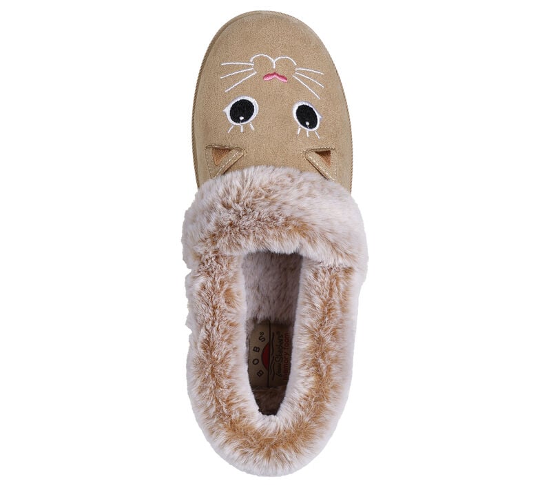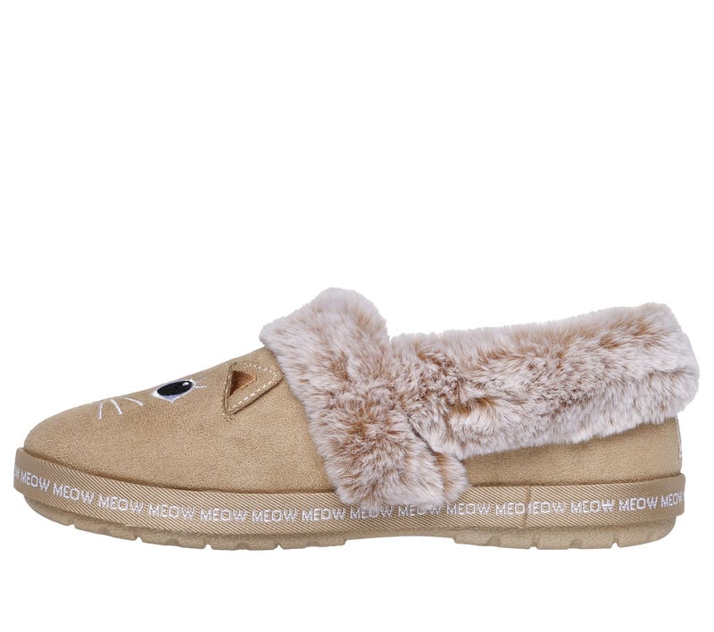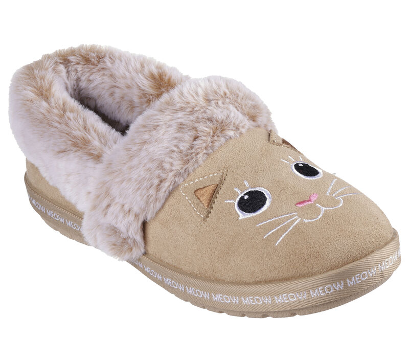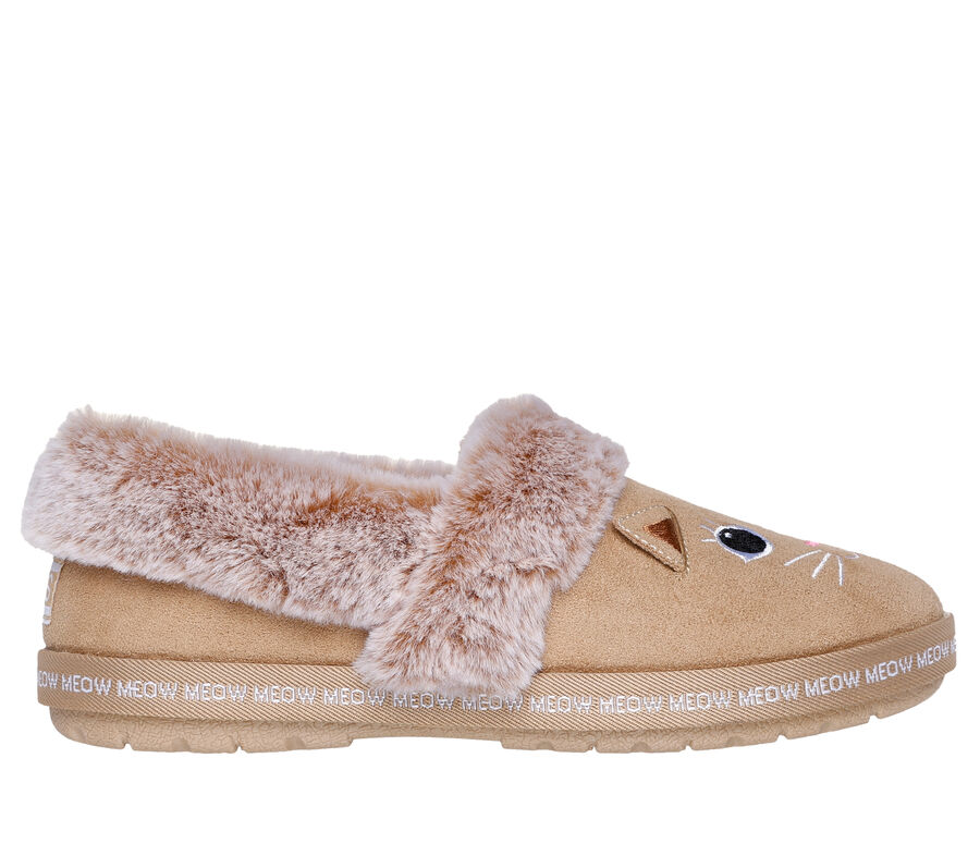 This Skechers shoe casual slipper features a soft microfiber suede-textured upper with an embroidered 3-D cat face design, faux-fur trim and a cushioned Skechers Memory Foam™ footbed. For every BOBS® purchase, a donation is made to animals in need. Soft microfiber suede-textured upper. Embroidered 3-D cat face design with faux-fur trim and lining. Slip-on casual comfort slipper design. These are Slippers made by Skechers.