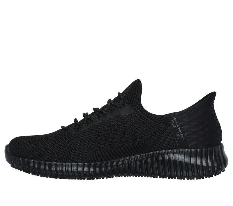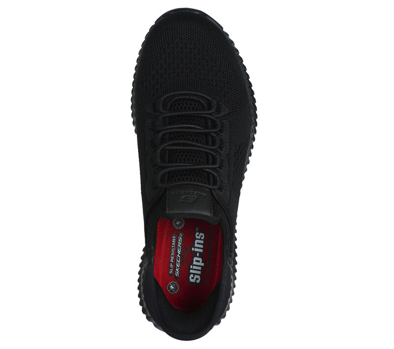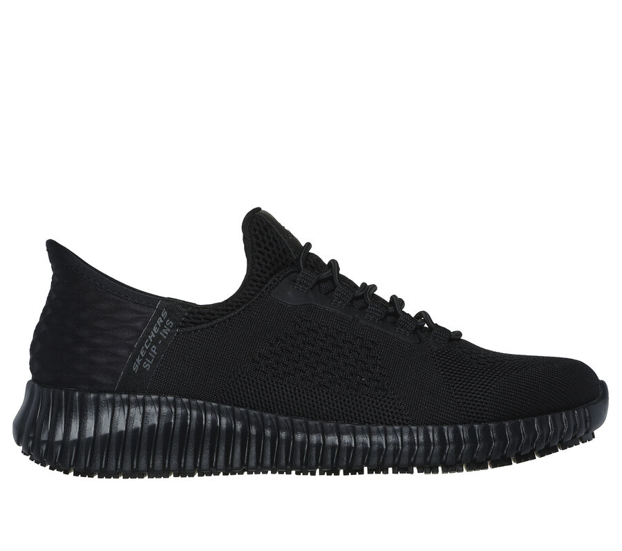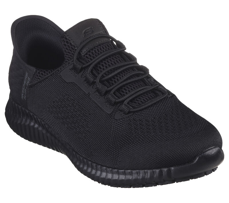 SLIP IN™ to pure comfort and convenience with Skechers Hands Free Slip-ins®. Designed with our Exclusive Heel Pillow™, this Skechers Slip-ins Work Shoe roomy stretch-laced work style features an engineered mesh and synthetic upper, a slip-resistant outsole, plus a Skechers Air-Cooled Memory Foam® cushioned comfort insole. Easy-wear shoes designed with our exclusive Heel Pillow™ that holds your foot securely in place. These are Work Shoes made by Skechers.