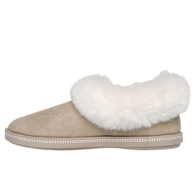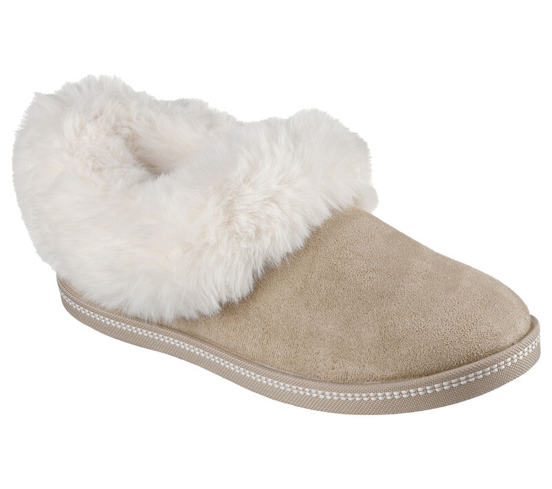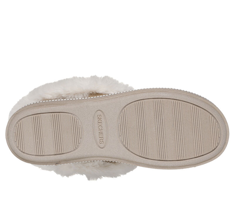 Crafted with 100% vegan materials. This Skechers shoe vegan clog-style slipper features a suede-look textile upper with faux-fur collar and lining, plus a Skechers Memory Foam™ cushioned comfort insole. These are Slippers made by Skechers.