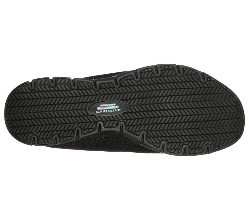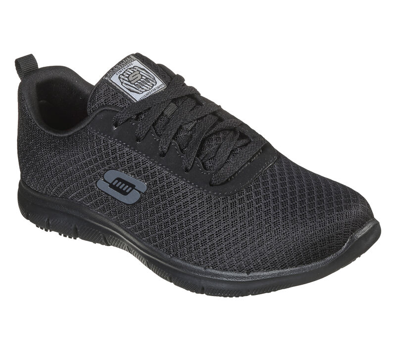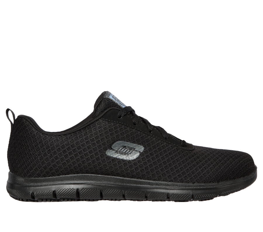 Skechers Air-Cooled Memory Foam® can provide pressure relief, instant comfort, and breathability. This Skechers slip-resistant work design features an airy mesh and synthetic upper with a lace-up front and a cushioned Skechers Air-Cooled Memory Foam® insole. These are Work Shoes made by Skechers.