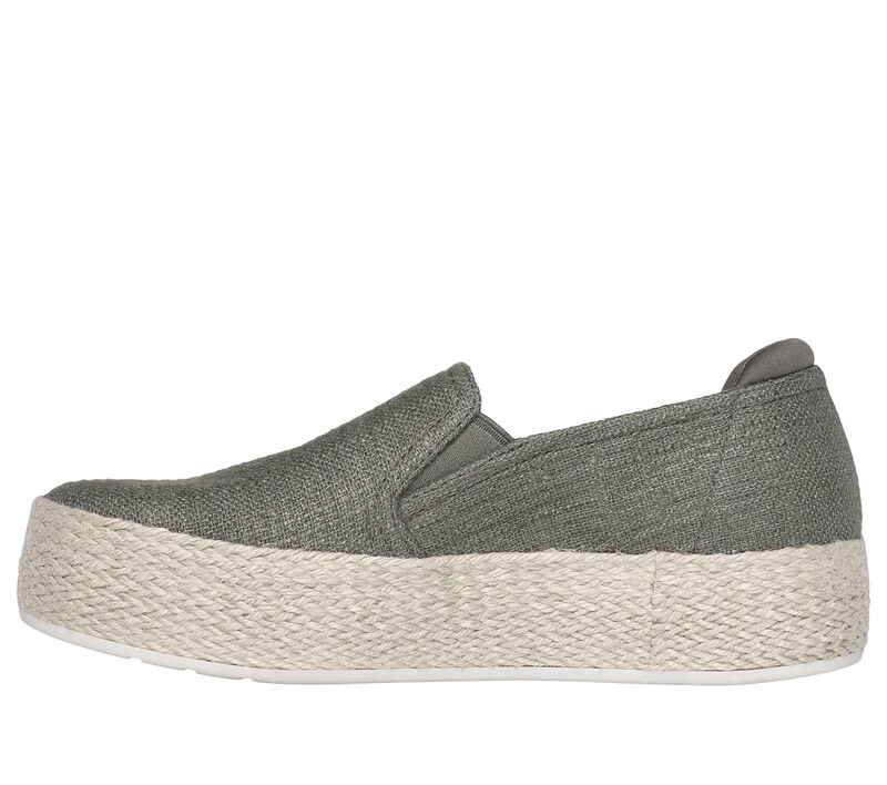 Celebrated lifestyle expert, Martha Stewart, delivers her one-of-a-kind touch to Skechers in this spirited collaboration. This Skechers easy-wearing casual design features a brushed canvas upper with twin gore panels, a cushioned Skechers Air-Cooled Memory Foam® insole, and a jute-trimmed espadrille flatform midsole. These are Canvas Shoes made by Skechers.