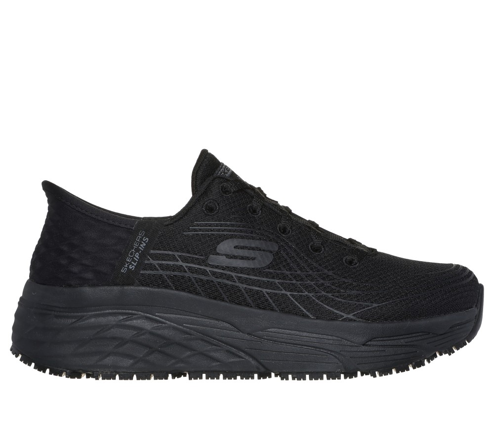 SLIP IN™ to pure comfort and convenience with Skechers Hands Free Slip-ins®. Easy-wear shoes designed with our exclusive Heel Pillow™ that holds your foot securely in place. Designed with our exclusive Heel Pillow™, this Skechers work shoe slip-resistant hands-free work sneaker features a mesh and synthetic upper with adjustable laces on a Skechers Max Cushioning™ midsole, and an Air-Cooled Memory Foam® insole. These are Work Shoes made by Skechers.