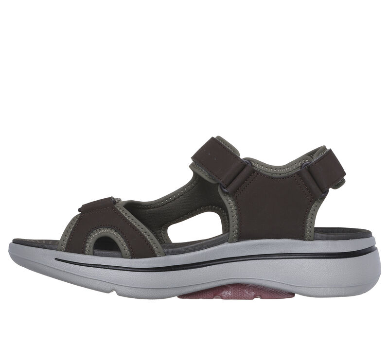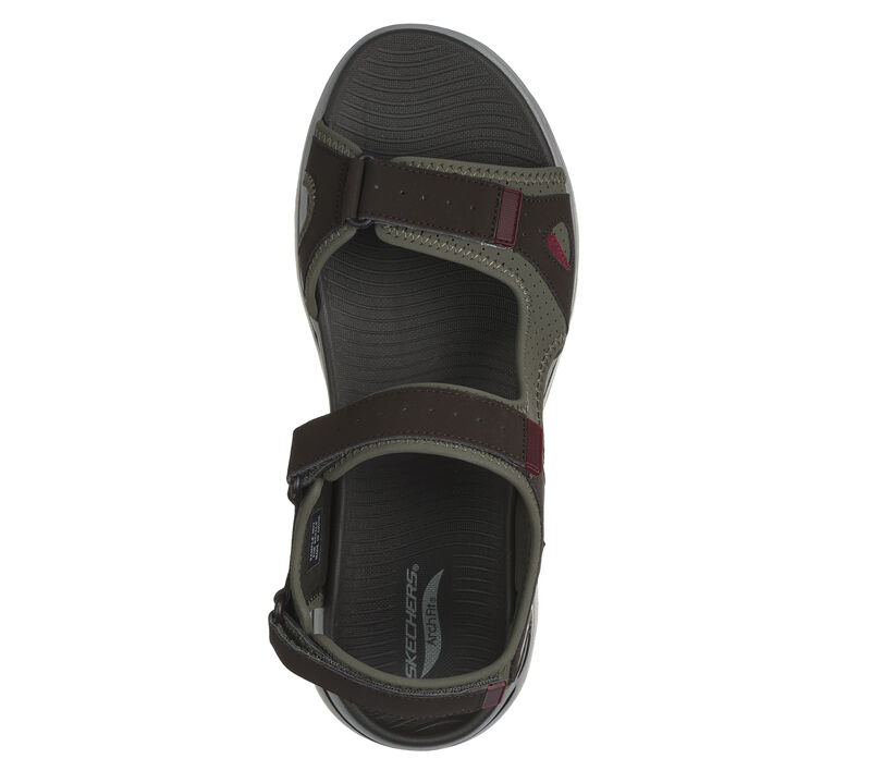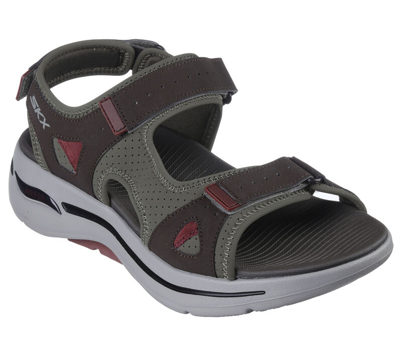This Skechers sporty sandal has been granted the APMA Seal of Acceptance. Featuring a synthetic perforated upper, adjustable strap closures, lightweight ULTRA GO® cushioning, and a contoured Goga Mat® footbed with podiatrist-certified Arch Fit® support. Great for physical activities, our lightweight ULTRA GO® cushioning provides a responsive, high-rebound effect with every stride. These are Sandals made by Skechers.