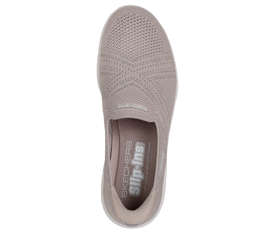 Step into effortless style and comfort. Designed with our exclusive Heel Pillow™, this Skechers casual slip-on style features a Stretch Fit® engineered knit upper with a Skechers Air-Cooled Memory Foam® comfort insole and lightweight ULTRA GO® cushioning. These are Flats made by Skechers.