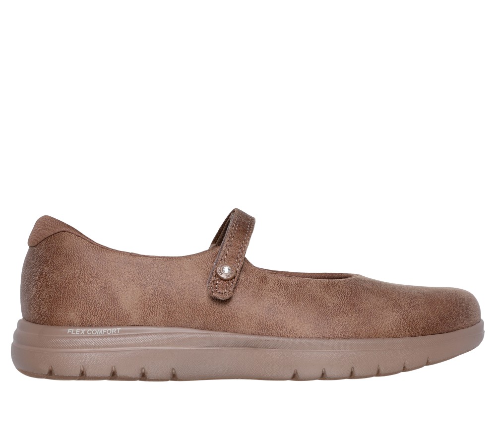 Skechers flats Technology offers an excellent combination of support and comfort, providing a lightweight cushioned, responsive feel that’s perfect for all-day wear. Great for physical activities, our lightweight Skechers flats cushioning provides a responsive, high-rebound effect with every stride. This Skechers flats Mary Jane style features a vegan leather upper with a Skechers Air-Cooled Goga Mat™ insole and lightweight ULTRA GO® cushioning. These are Flats made by Skechers.