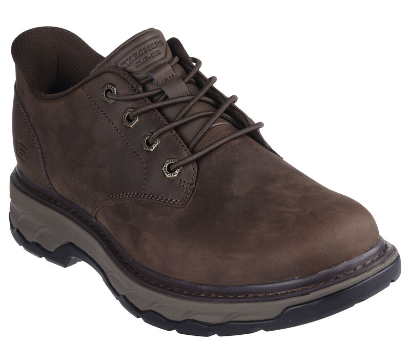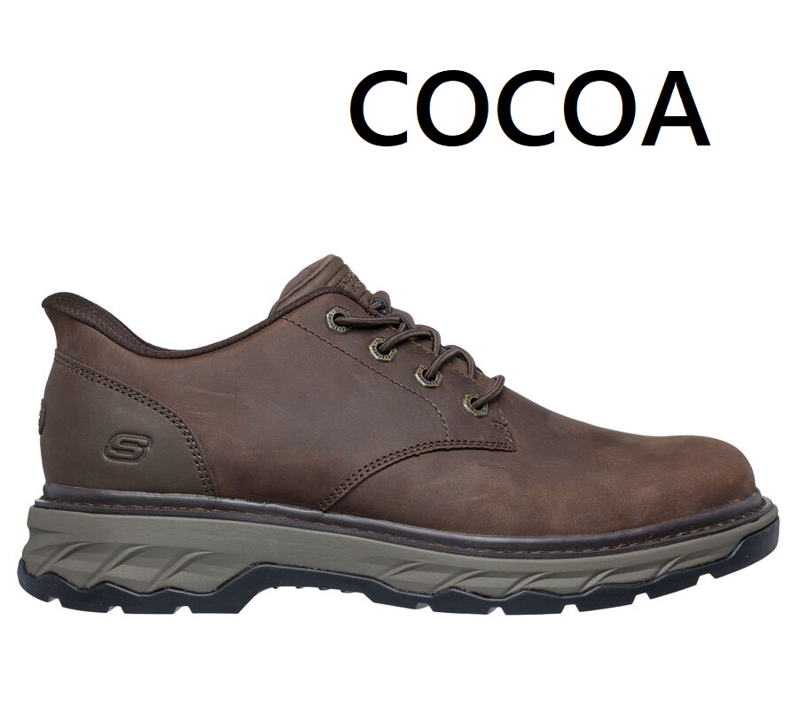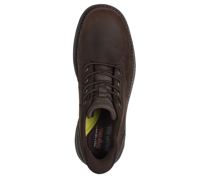 Designed with our Exclusive Heel Pillow™, this Skechers Slip-ins Relaxed Fit Lockett Gustav classic round toe style features a leather upper with stretch laces, a charcoal-infused Skechers Air-Cooled Memory Foam® insole and Skechers Memory Arch™ cushioning for added support.