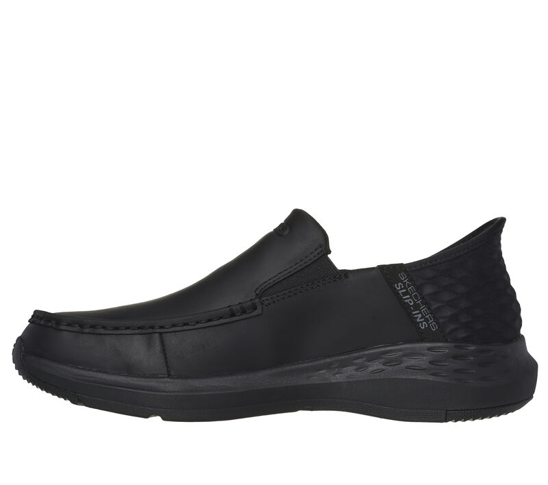 Designed with an exclusive Heel Pillow™, this Skechers shoe laceless fit moc toe style features a Skechers Slip-ins® molded heel panel, leather upper, Skechers Air-Cooled Memory Foam® insole, and Goga Mat Arch™ cushioning for added support. Skechers Air-Cooled Memory Foam® can provide pressure relief, instant comfort, and breathability. SLIP IN™ to pure comfort and convenience with Skechers Hands Free Slip-ins®. Easy-wear shoes designed with our exclusive Heel Pillow™ that holds your foot securely in place. Step into effortless style and comfort with Skechers Hands Free Slip-ins™, designed with a unique Comfort Pillow™ in the heel. These are Skechers Casual Shoes made by Skechers.