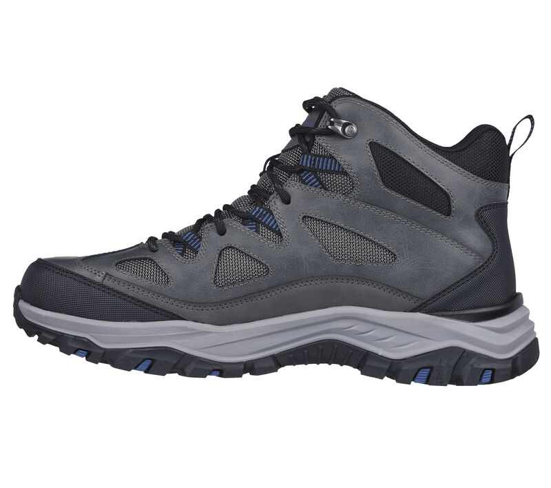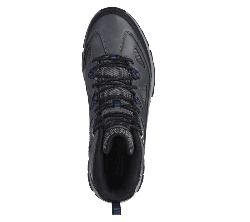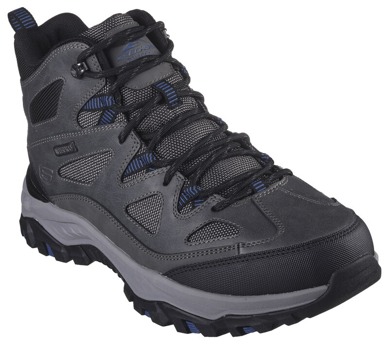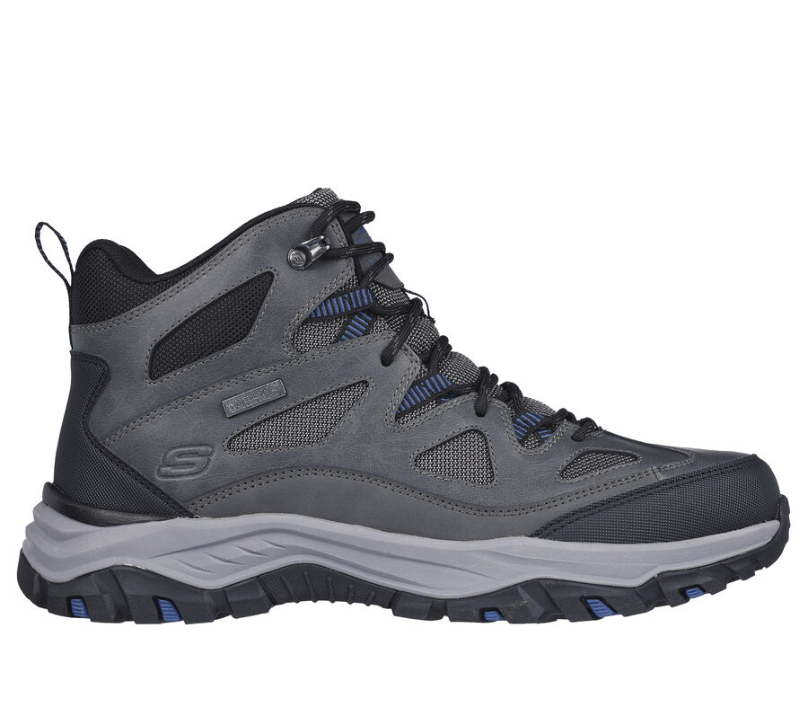 This Skechers waterproof trail hiking boot features a roomy leather and synthetic upper with a lace-up front and a Skechers Air-Cooled Memory Foam® insole. Skechers Air-Cooled Memory Foam® cushioned comfort insole. Relaxed Fit® for a roomy comfort fit at toe and forefoot. Seam-sealed waterproof design. Skechers Air-Cooled Memory Foam® cushioned comfort insole. These are Waterproof Shoes made by Skechers.
