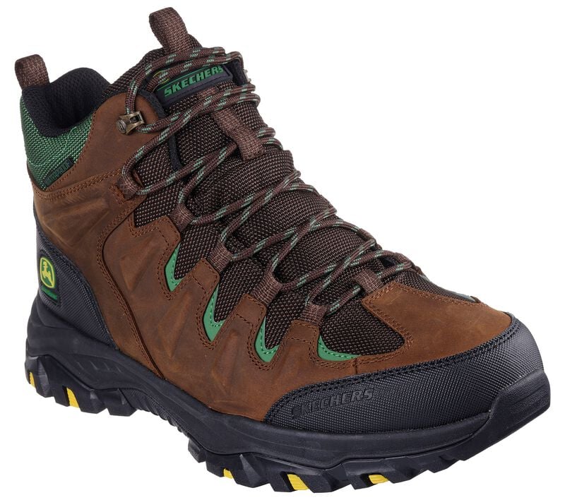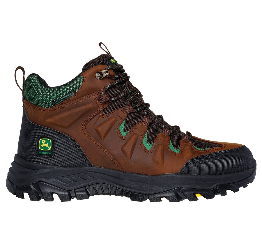 Fusing John Deere’s rich heritage with Skechers’ comfort technologies, this Skechers John Deere style delivers the perfect blend of style and durability for work, outdoors and the street. Skechers Air-Cooled Memory Foam® cushioned comfort insole. Relaxed Fit® for a roomy comfort fit at toe and forefoot. Waterproof! These are Skechers Boots made by Skechers.
