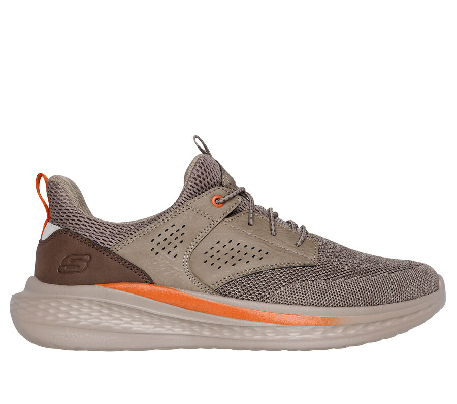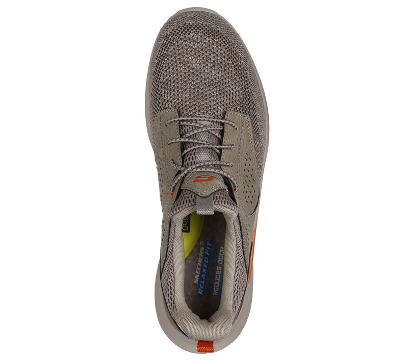 This Skechers shoe stretch-laced vegan style features a mesh and synthetic upper with a charcoal-infused Skechers Air-Cooled Memory Foam® insole and a Skechers Goga Mat Arch™ for added support. These are Skechers Casual Shoes made by Skechers.