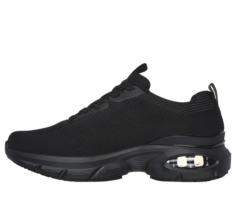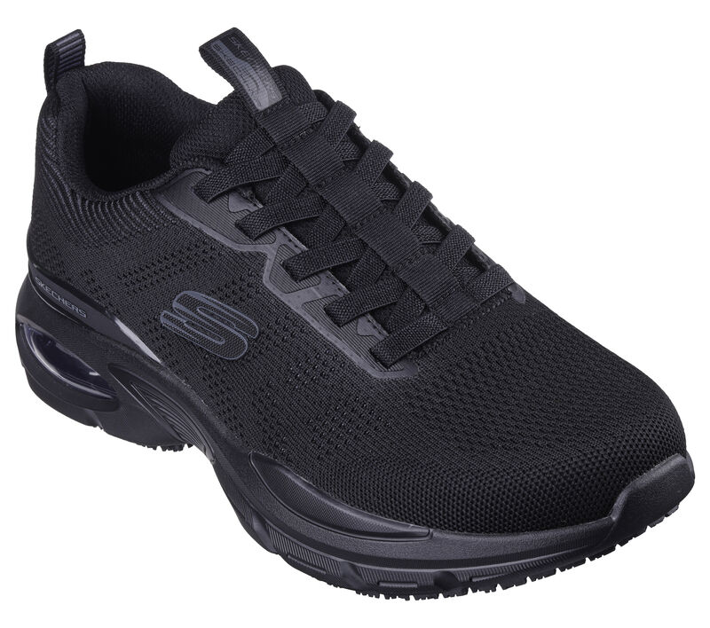 This slip-resistant sneaker features a mesh and synthetic upper with stretch laces, a Skech-Air® visible airbag midsole, and a cushioned Skechers Air-Cooled Memory Foam® comfort insole. These are Work Shoes made by Skechers.