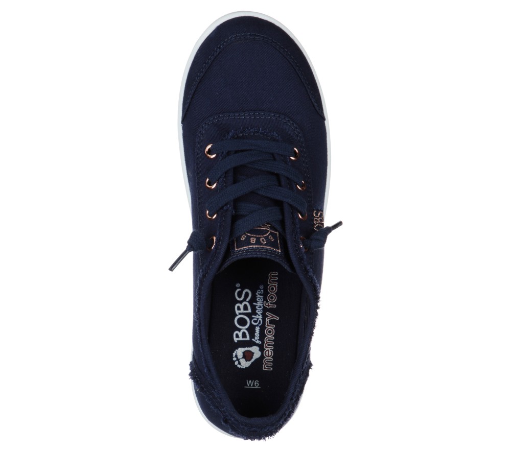 BOBS from Skechers logo detail. This Skechers shoe casual design features a canvas upper with frayed details and a cushioned Skechers Memory Foam™ comfort insole. For every BOBS purchase, a donation is made to animals in need. These are Canvas Shoes made by Skechers.