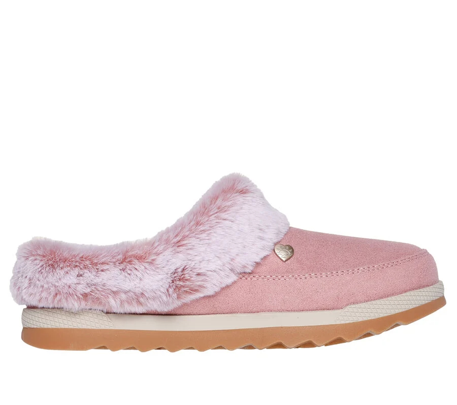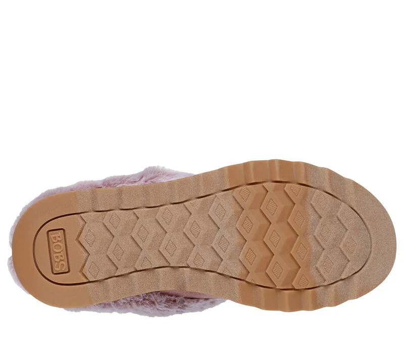 Skechers BOBS Cozy Chill featuring a vegan suede upper with faux-fur lining and a cushioned Skechers Memory Foam™ footbed. For every BOBS® purchase, a donation is made to animals in need. Skechers Memory Foam™ cushioned comfort footbed. Skechers Warehouse Outlet.
