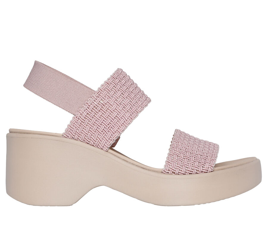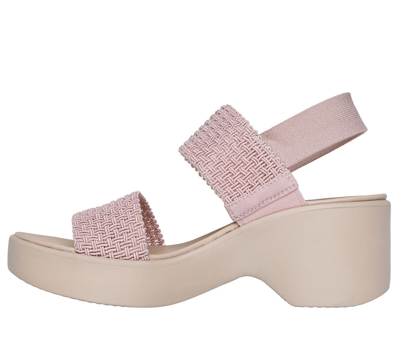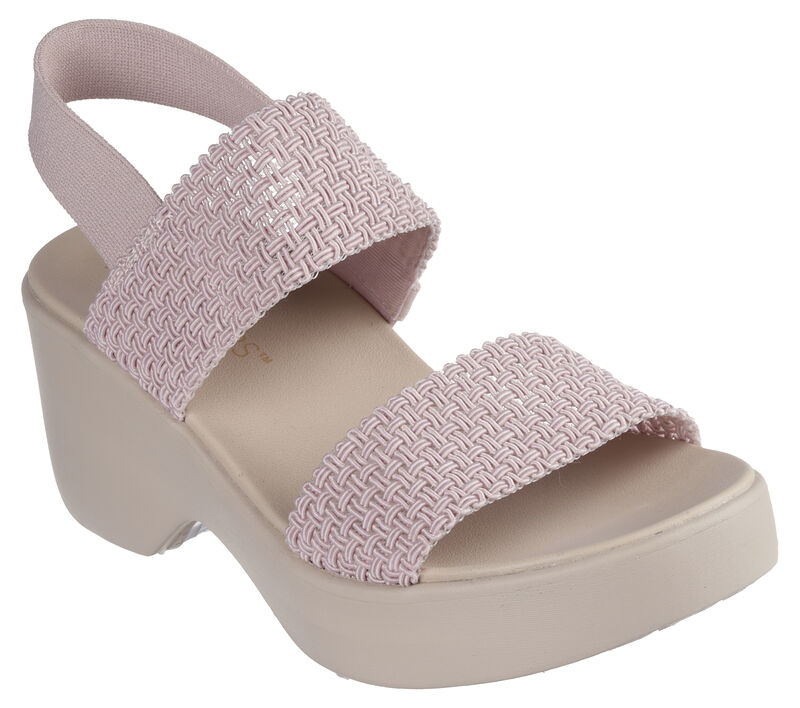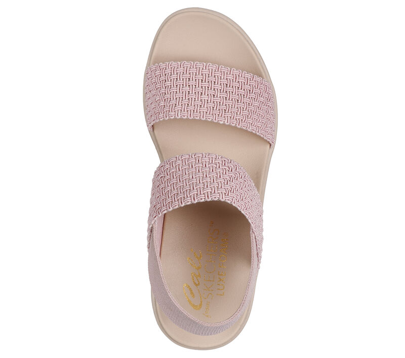 This Skechers lightweight sandal features a stretchy knitted double band strap upper with a sling back and a cushioned Luxe Foam® footbed. Match warm-weather style with toe-to-toe comfort from our contoured well-cushioned Luxe Foam® footbeds. These are Women’s Shoes made by Skechers.