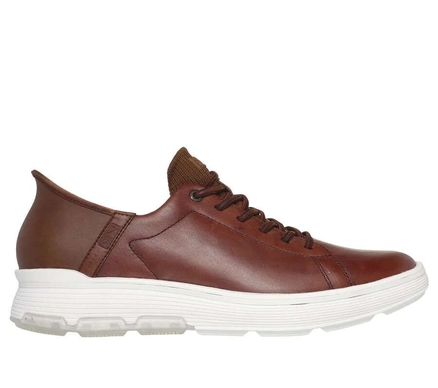 Designed with Skechers exclusive Heel Pillow™, this Skechers Casual Glide Cell TOUCHLESS FIT® style features a soft leather upper with a hands free molded heel panel, stretch laces, translucent outsole detail, and a Memory Foam Lux insole. SLIP IN™ to pure comfort and convenience with Skechers Hands Free Slip-ins®. Easy-wear shoes designed with our exclusive Heel Pillow™ that holds your foot securely in place. These are Skechers Slip-ins made by Skechers.