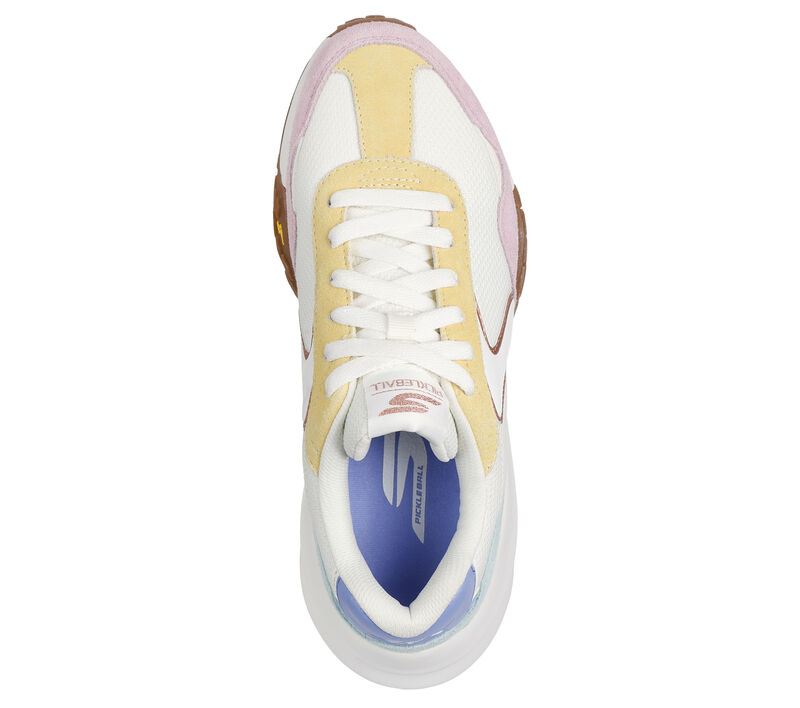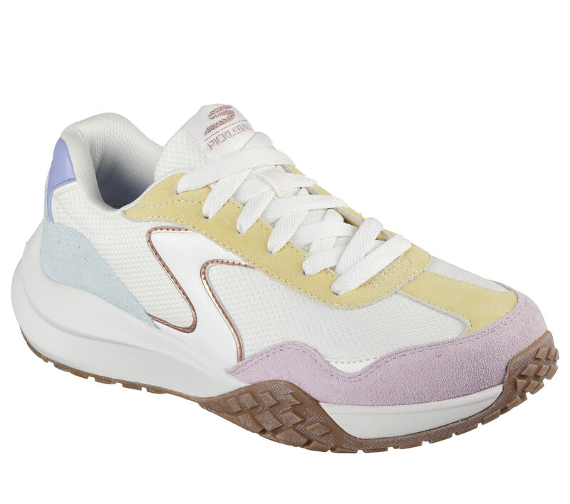 Cheap and easy! Skechers Outlet Shoes. Hit the court in retro-inspired style and modern performance technology wearing Skechers Court Frenzy. Designed specifically for Pickleball and Padel game play, this lace-up court shoe features a mesh upper with genuine suede overlays, lightweight Move Foam™ cushioning, and a Goodyear® Gold compound outsole that allows the player to perform controlled slides on the court surface. These are Women’s Shoes made by Skechers.