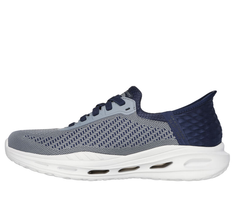 Designed with our exclusive Heel Pillow™, this Skechers stream-lined slip-on features a knitted mesh upper with stretch laces, an air-cooled ergonomic midsole, and removable Arch Fit® insole support. These are Skechers Slip-ins made by Skechers.
