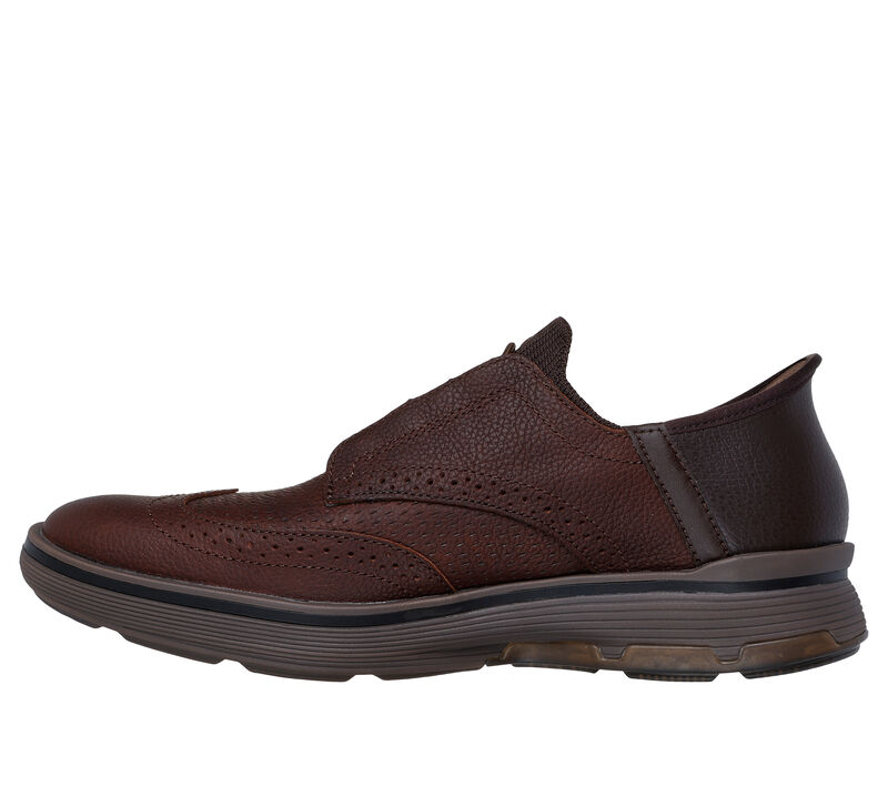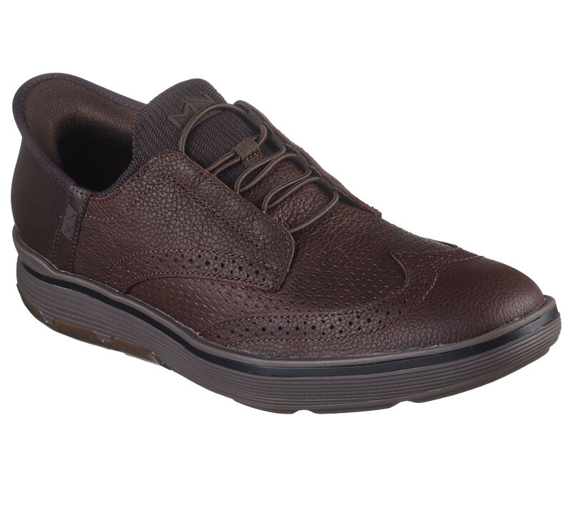 Designed with our exclusive Heel Pillow™, this Skechers shoe wingtip dress style features a premium smooth leather upper with a hands-free molded heel panel, stretch-lace front, translucent outsole detail and a Memory Foam Lux insole. Step into effortless style and comfort with Skechers Hands Free Slip-ins™, designed with a unique Comfort Pillow™ in the heel. These are Dress Shoes made by Skechers.