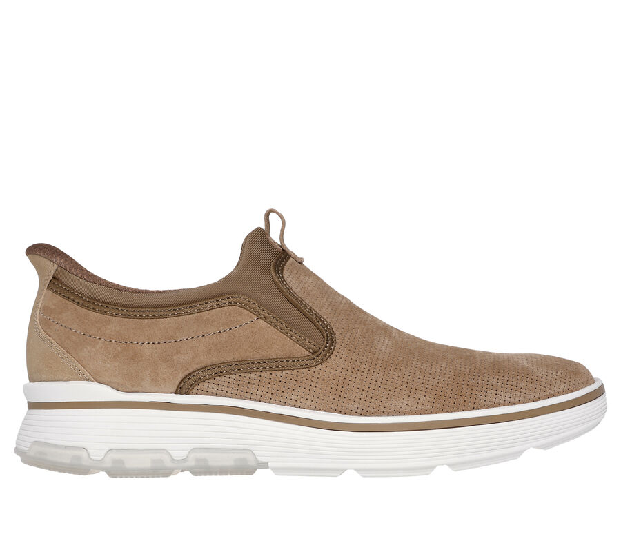 Designed with our exclusive Heel Pillow™, this Skechers shoe laceless slip-on features a suede upper with textile collar, a woven-look embossed vamp, and a cushioned Memory Foam Lux insole. These are Skechers Slip-ins made by Skechers.