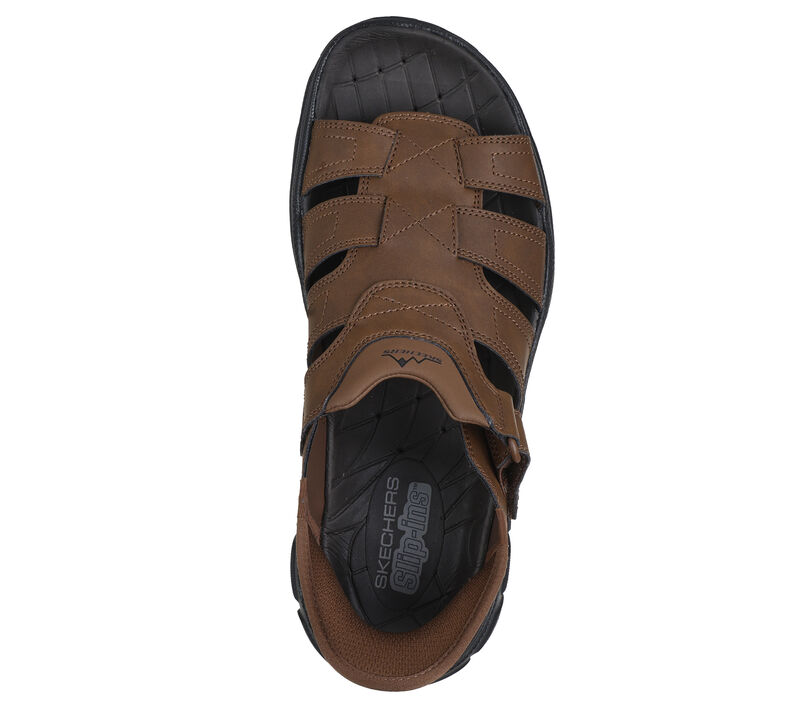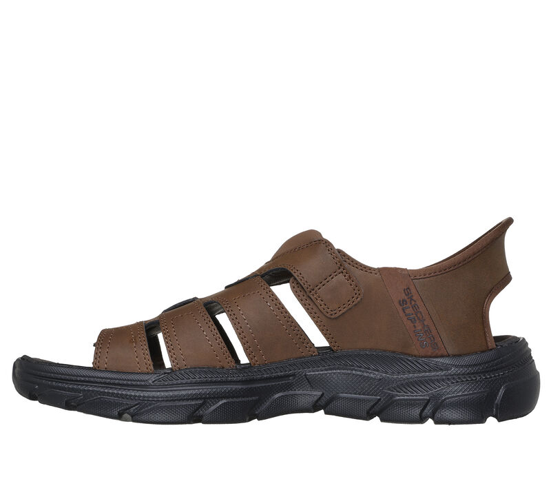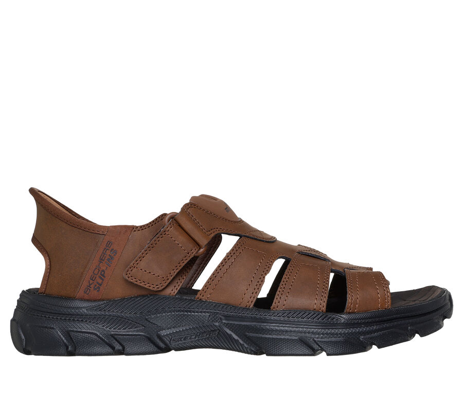 Designed with our Heel Pillow™, this Skechers fisherman style sandal features a synthetic upper with an adjustable instep strap, back heel piece and a cushioned comfort footbed. Step into effortless style and comfort with Skechers Hands Free Slip-ins™, designed with a unique Comfort Pillow™ in the heel. Hands-free Skechers Slip-ins®back heel. Heel Pillow™ holds your foot securely in place. Relaxed Fit® for a roomy comfort fit at toe and forefoot. These are Sandals made by Skechers.