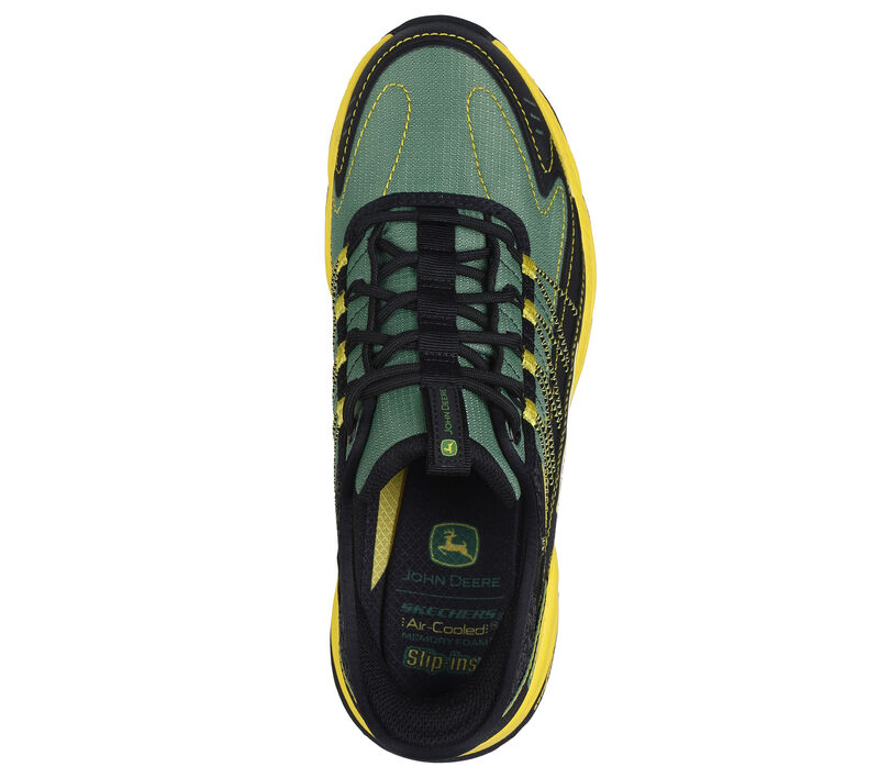 This Skechers anti-slip outdoor trail lace-up is designed with our exclusive Heel Pillow™ and features a 100% waterproof mesh upper with synthetic overlays, Skechers Air-Cooled Memory Foam® insole, and a durable Goodyear® Rubber Outsole. Fusing John Deere’s rich heritage with Skechers’ comfort technologies, this Skechers Slip-ins Vigor AT style delivers the perfect blend of style and durability for work, outdoors and the street. These are Waterproof Shoes made by Skechers.