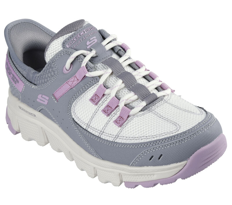 Designed with our Exclusive Heel Pillow™, this lace-up hiking trail shoe features a synthetic duraleather and mesh upper with a cushioned Skechers Air-Cooled Memory Foam® insole. These are Women’s Shoes made by Skechers.