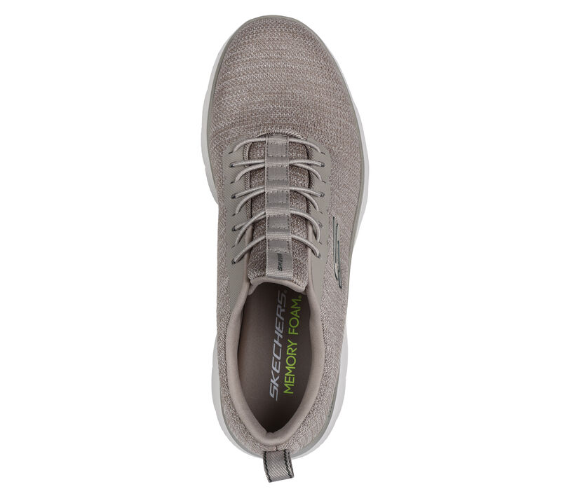 Skechers Memory Foam™ cushioned comfort insole. Crafted with 100% vegan materials. Featuring a knitted upper with stretch laces and a cushioned Skechers Memory Foam™ insole. These are Skechers Slip-Ons made by Skechers.