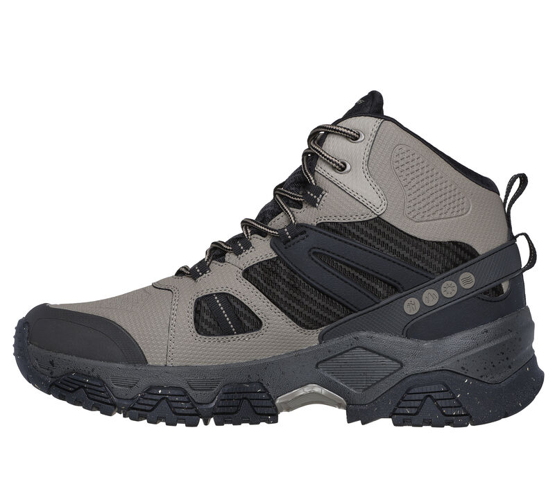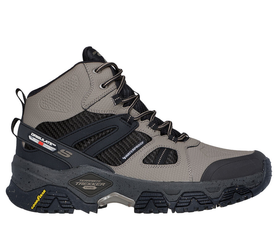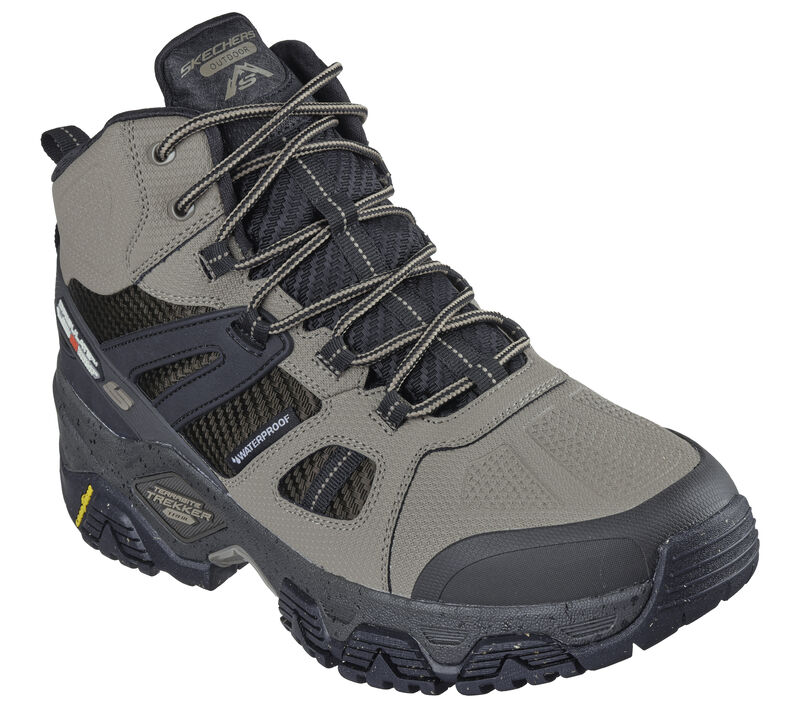 Take on any terrain in supreme outdoor comfort wearing Skechers shoe. This waterproof mid-top trail design features a durable mesh, synthetic, and leather upper with a lace-up front, an anti-slip Goodyear® rubber outsole, insulated sock lining, and a Skechers Air-Cooled Memory Foam® cushioned comfort insole. These are Men’s Shoes made by Skechers.