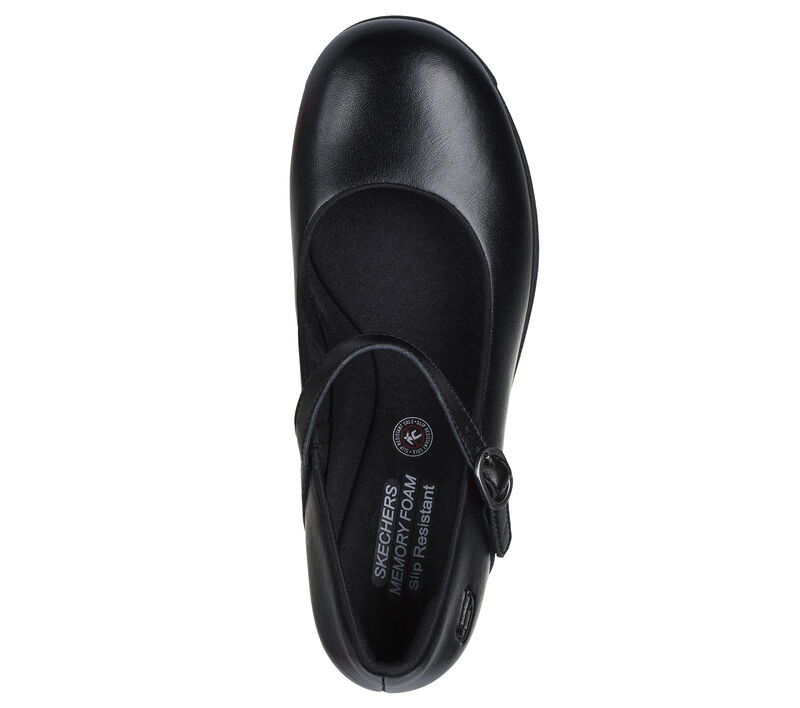 This Skechers Mary Jane features a leather upper with adjustable buckle strap closure, slip-resistant traction outsole, and a cushioned Skechers Memory Foam™ insole. These are Women’s Shoes made by Skechers.