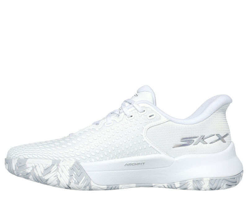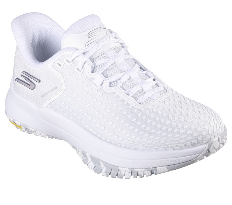 Cheap and easy! Take your game to the next level with Skechers Hands Free Slip-ins®: Viper Court Elite. Created specifically for the competitive Pickleball athlete, this slip-on court shoe features our exclusive hands-free Heel Pillow™ with an athletic mesh and screen print upper, removable Arch Fit® insole, and lightweight ECO FLIGHT™ cushioning. The design is complete with a Goodyear® Rubber Performance Outsole built for increased durability and control on the Pickleball court surface. These are Women’s Shoes made by Skechers.