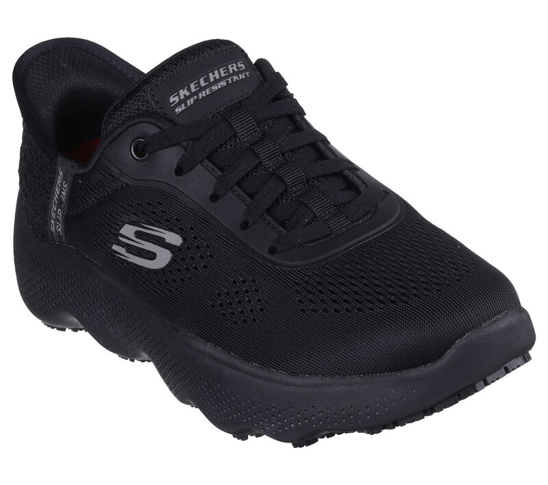 Skechers Slip-ins Work shoe featuring a mesh upper with adjustable laces, our exclusive Heel Pillow™, a slip-resistant outsole, plus a Massage Fit® cushioned comfort insole. These are Work Shoes made by Skechers.