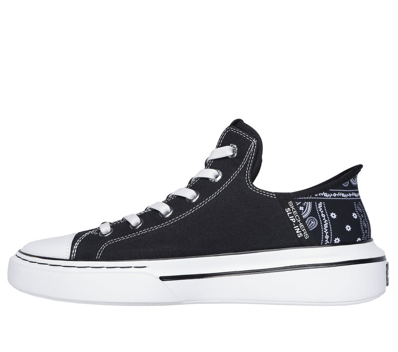 Skechers Snoop’s classic canvas court style gets an OG upgrade with paisley trimmed heels in a low-top design. Combining West Coast swag with Skechers Slip-ins® technology for the smoothest way to get your dip on. SLIP IN™ to pure comfort and convenience with Skechers Hands Free Slip-ins®. Easy-wear shoes designed with our exclusive Heel Pillow™ that holds your foot securely in place. These are Canvas Shoes made by Skechers.