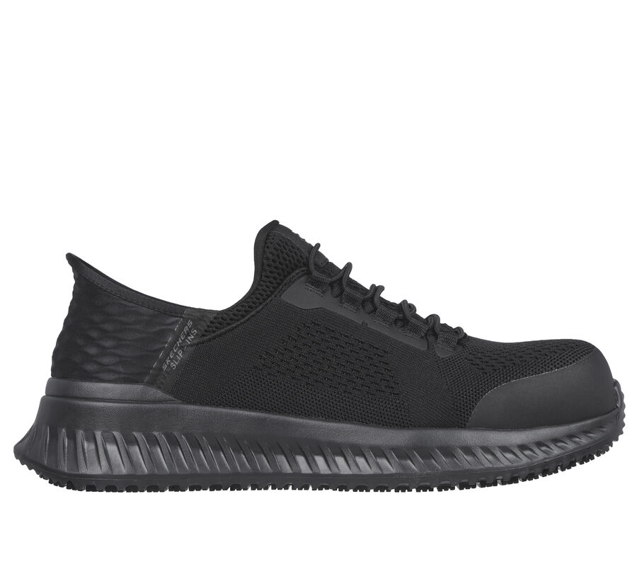Designed with our exclusive Heel Pillow™, this Skechers Slip-ins shoe work design features an engineered mesh and synthetic upper with a stretch-lace front, composite safety toe, and a Skechers Air-Cooled Memory Foam® cushioned insole. Step into effortless style and comfort with Skechers Hands Free Slip-ins™, designed with a unique Comfort Pillow™ in the heel. These are Work Shoes made by Skechers.